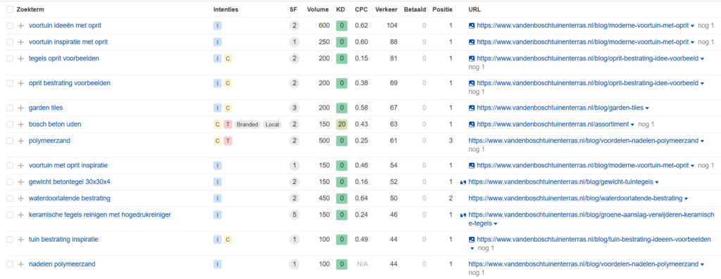 Meer websitebezoekers, hogere conversie, meer klanten en een merkbaar sterkere online positie. Bij Van den Bosch Tuin & Terras zagen we 2204% toename in websiteverkeer over de afgelopen 5 jaar. Jouw resultaten hangen af van je startpositie en branche, maar vergelijkbare groeicijfers zijn haalbaar.